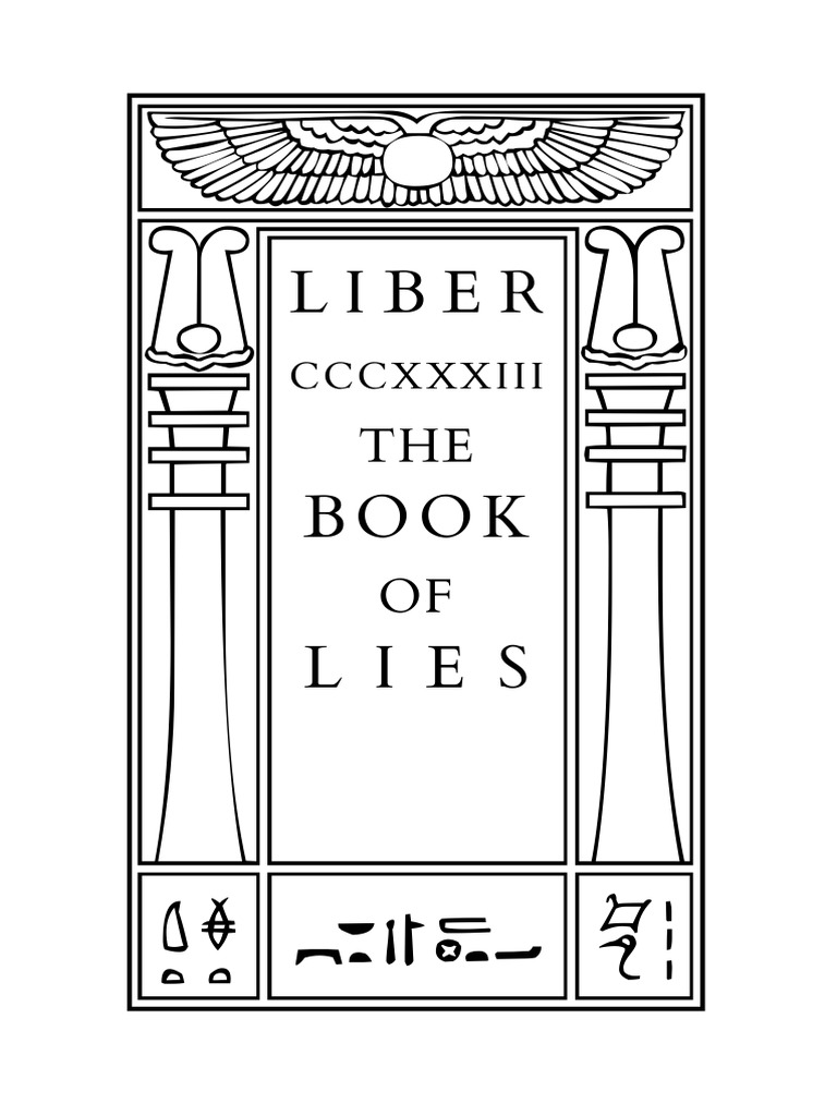 THE BOOK OF LIES Aliester Crowley THE BOOK OF LIES WHICH IS ALSO FALSELY CALLED BREAKS THE WANDERINGS OR FALSIFICATIONS OF THE ONE THOUGHT OF FRATER. The Book of Lies or Liber 333 is a holy book in the Western occult tradition of Thelema consisting of 91 short chapters of poems aphorisms rituals and metaphysics. Thisis the Love of These.